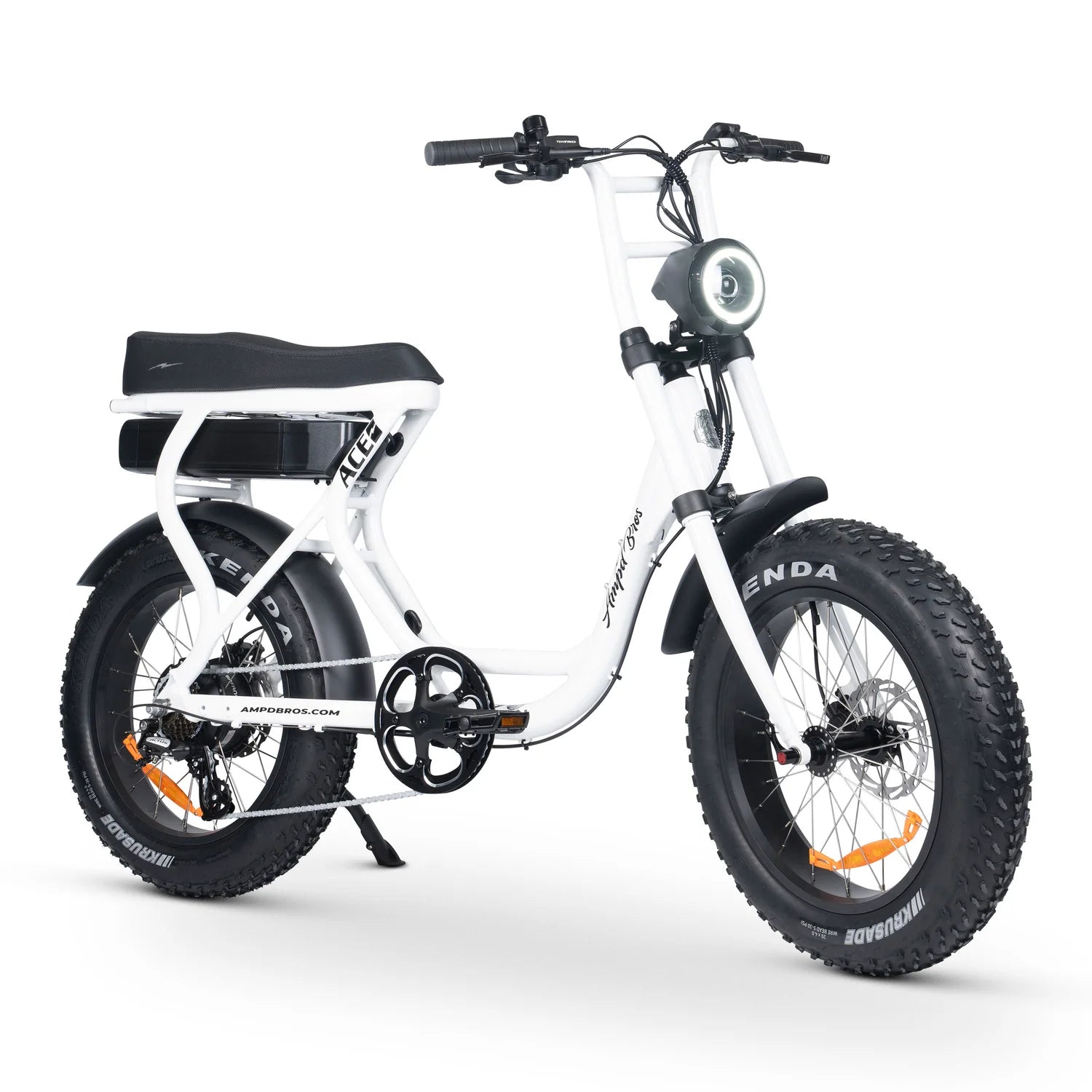 The ACE-S takes performance up a notch with our Custom Master Control unit, providing top-tier power density and advanced motor control algorithms. Seamlessly integrating light controls, improving reliability and simplifying diagnostics. The ACE is your go-to for all terrain adventure thanks to its 20x4" Fat Kenda krusade mud tyres, a High Torque Bafang Rear Hub Motor and Tektro Hydraulic Disc Brakes, guaranteeing a smooth and secure ride.