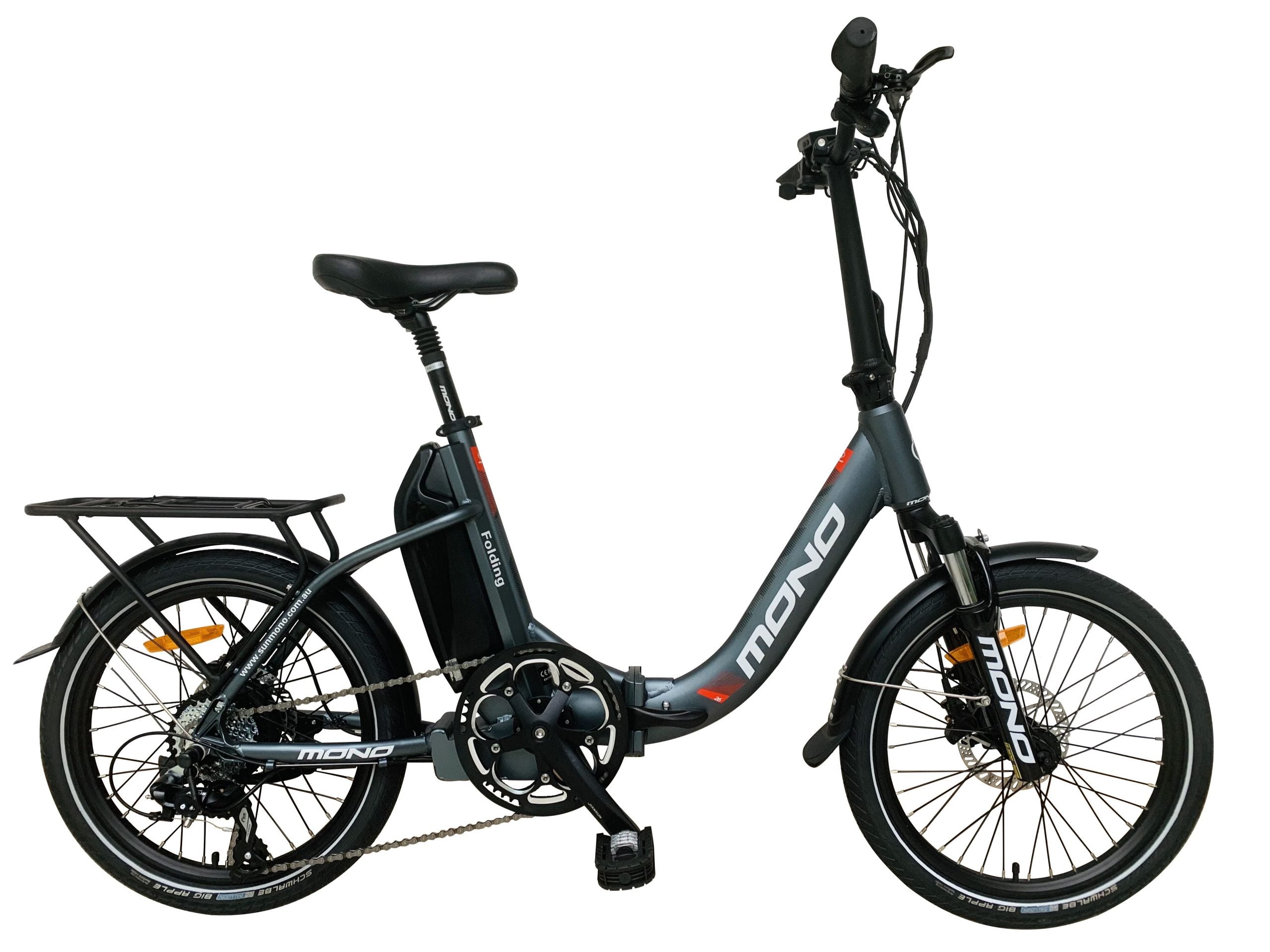 At only 20KG total weight, the E-Mono VESTA is one of the lightest E bikes in this classic step-through style folding E-Bikes. Along with premium features like hydraulic brakes, seat post suspension, front fork suspension, carry rack and mudguards as standard, the VESTA has to be the best value folding Ebike on the market.